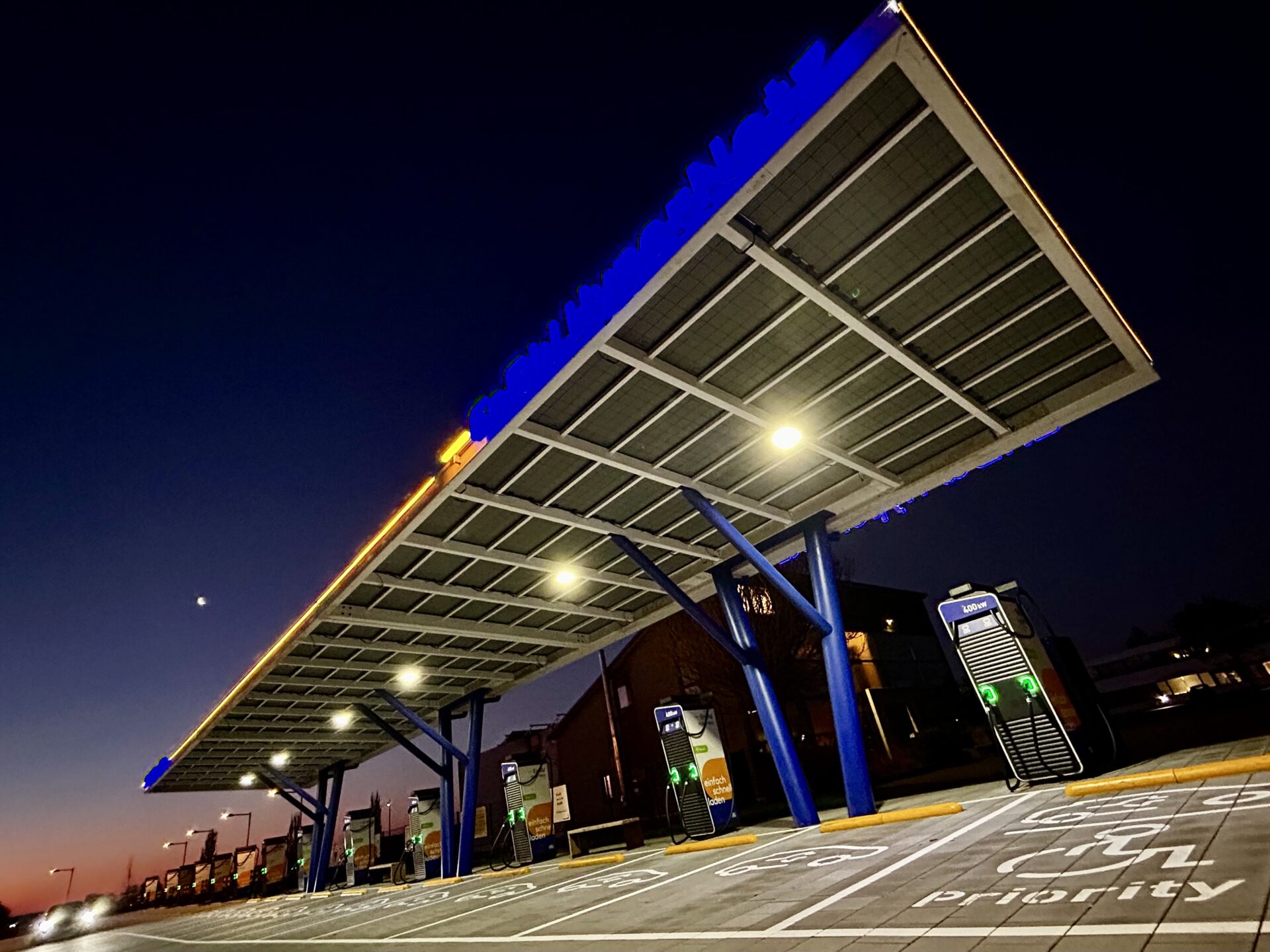 Voller Energie: EnBW betreibt im ecopark einen großen Schnellladepark für die E-Mobilität. Die 26 Ladepunkte bieten bis zu 400 kW Ladeleistung aus reinem Ökostrom. Je nach Fahrzeugtyp sorgt eine 15-minütige Rast für bis zu 400 km Reichweite.